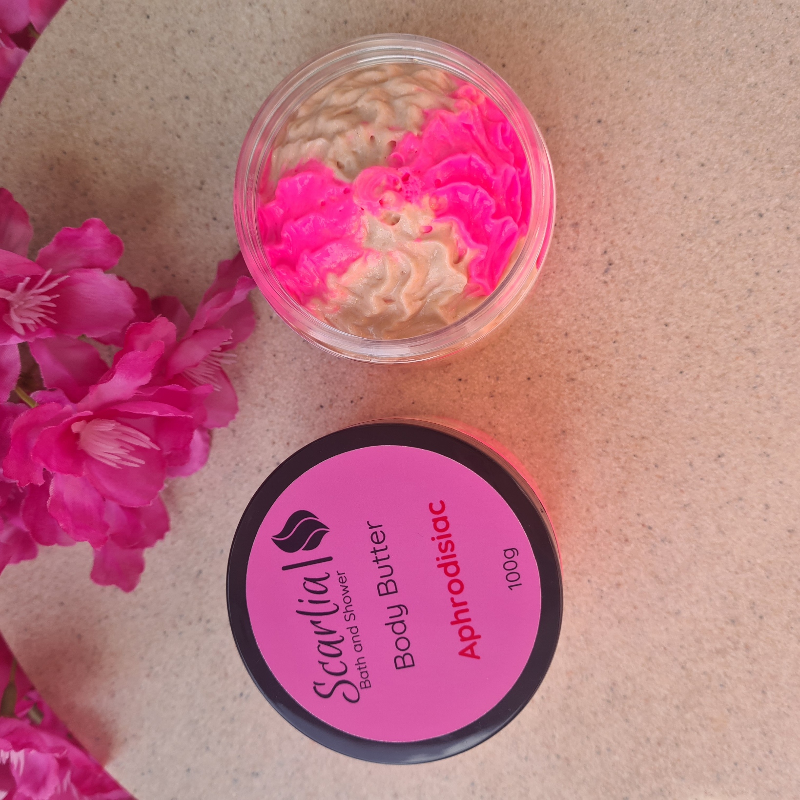 Ignite the senses with our Aphrodisiac Body Butter. Luxuriously crafted with rich butters and hydrating oils, this indulgent moisturiser melts into the skin, leaving it soft, supple, and beautifully scented with the alluring, sensual notes of Aphrodisiac.