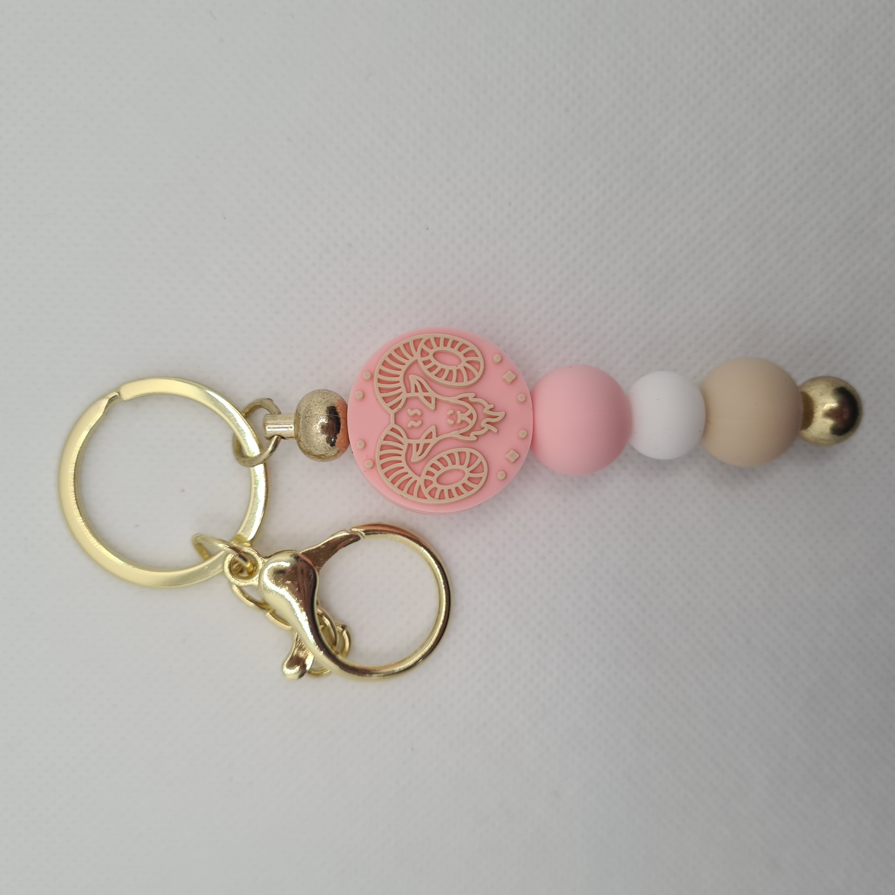 Bold and confident, our Aries Star Sign Silicone Bead Keychain is designed to capture the fiery spirit of this dynamic zodiac sign. The pink focal bead features the ram — Aries’ powerful symbol — representing strength, courage, and leadership. Paired with pink, tan, and white silicone beads, the design reflects Aries’ vibrant energy while keeping a touch of elegance.