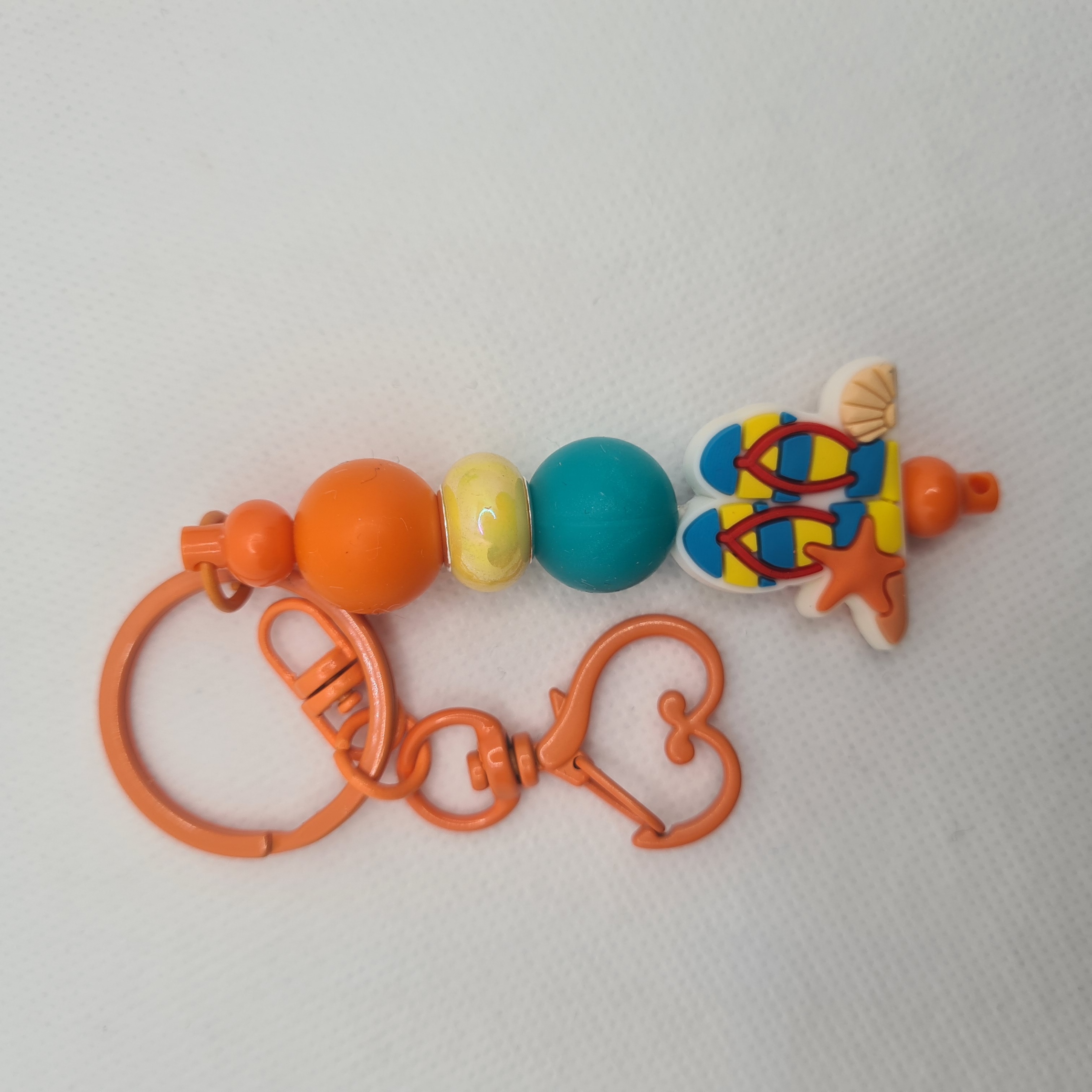 Finished with an orange keychain, matching keyring, and a cute heart-shaped clip, this keychain is perfect for attaching to your keys, bag, or beach tote.