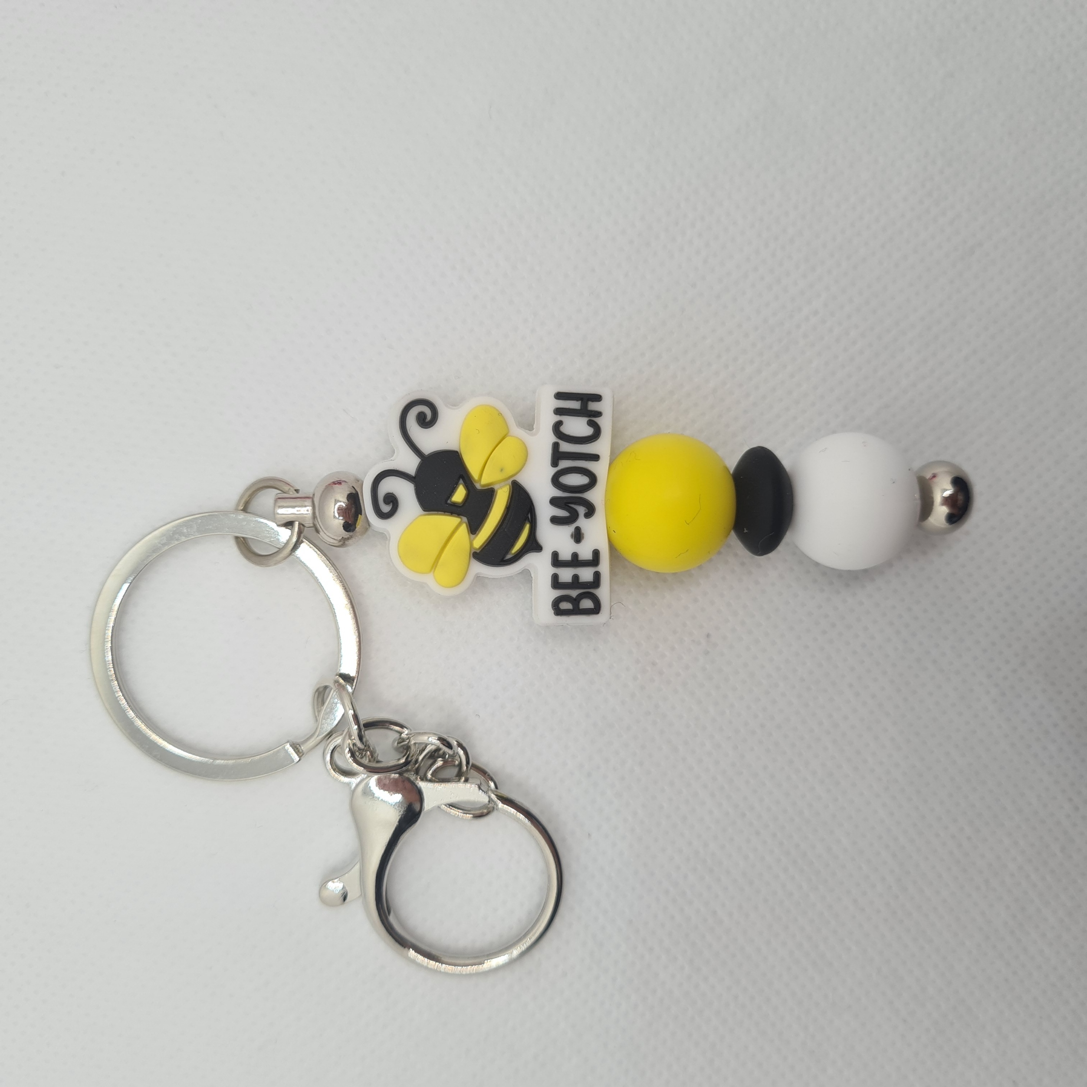 Add a little sass to your keys with the Bee Yotch Silicone Bead Keychain. Featuring a fun focal bead with a cheeky bee design and the words “Bee Yotch,” this keychain is paired with bright yellow and white silicone beads for a playful pop of colour.