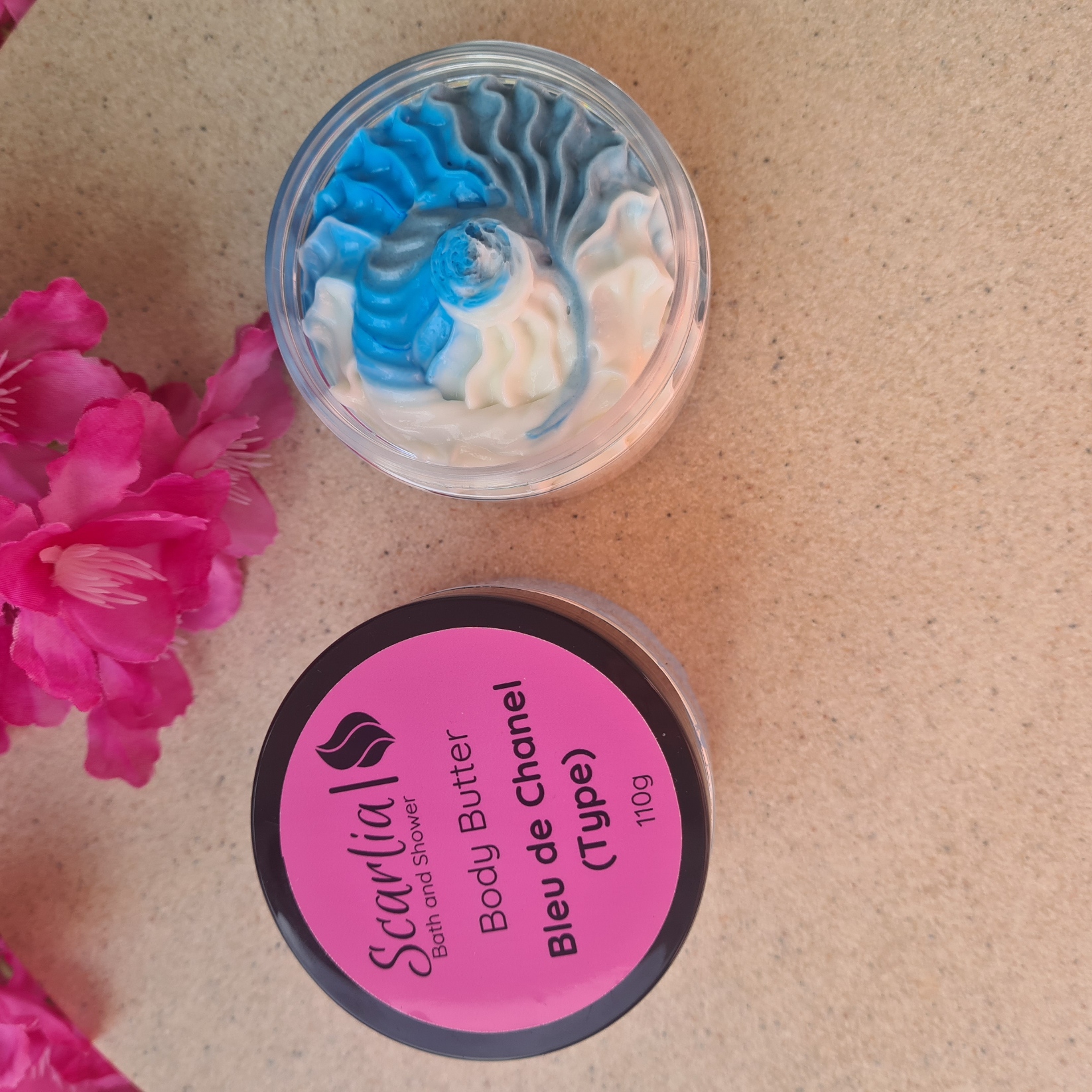 Elevate your skincare routine with the bold sophistication of our Bleu de Chanel (Type) Body Butter. Enriched with luxurious butters and nourishing oils, this moisturiser melts into the skin, delivering deep hydration and a smooth, non-greasy finish.