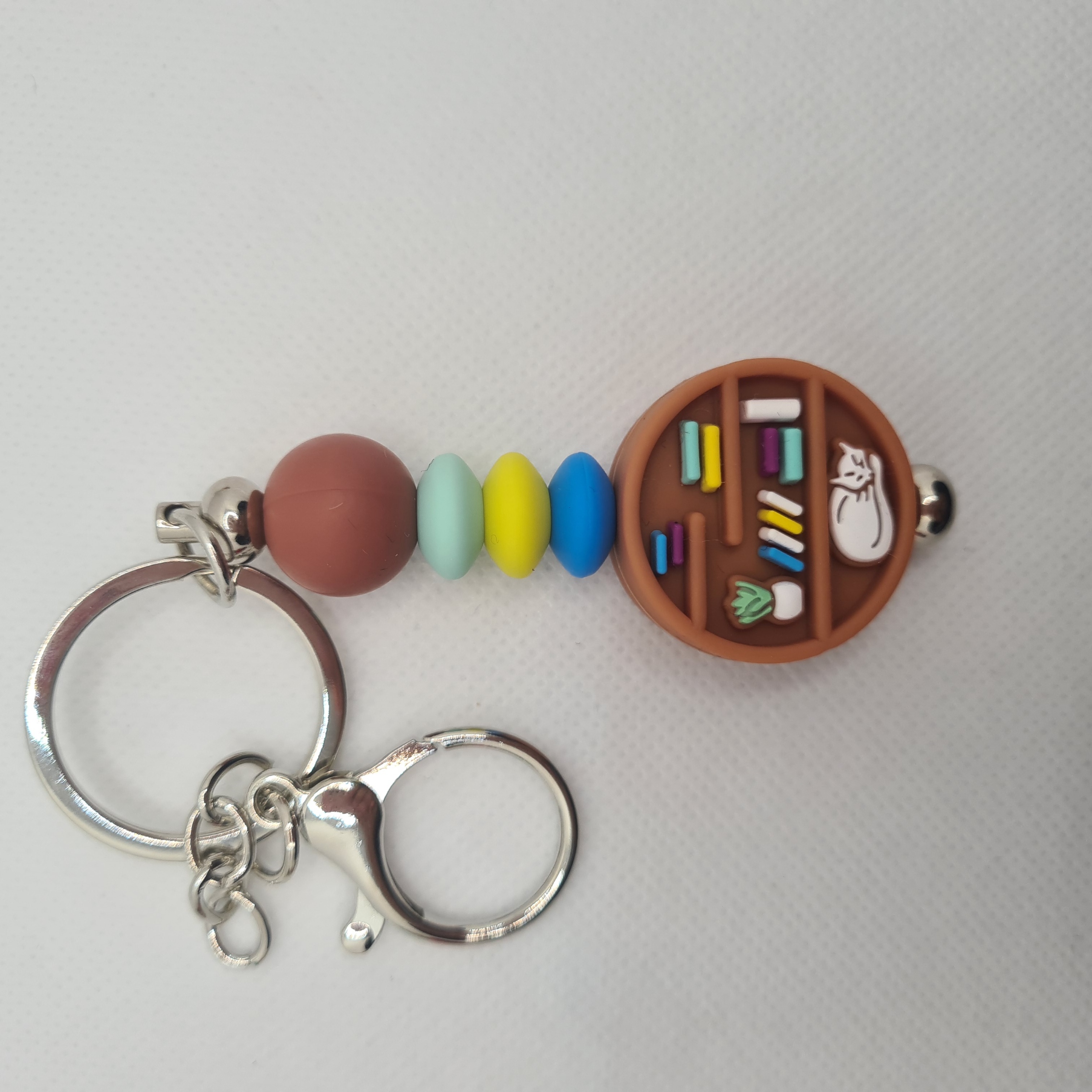 For book lovers and cat enthusiasts alike, our Bookshelf Silicone Bead Keychain is a charming way to carry a little literary magic wherever you go. The round focal bead features a detailed bookshelf with books, complete with a cozy cat lounging on the bottom shelf — a whimsical nod to quiet reading moments.