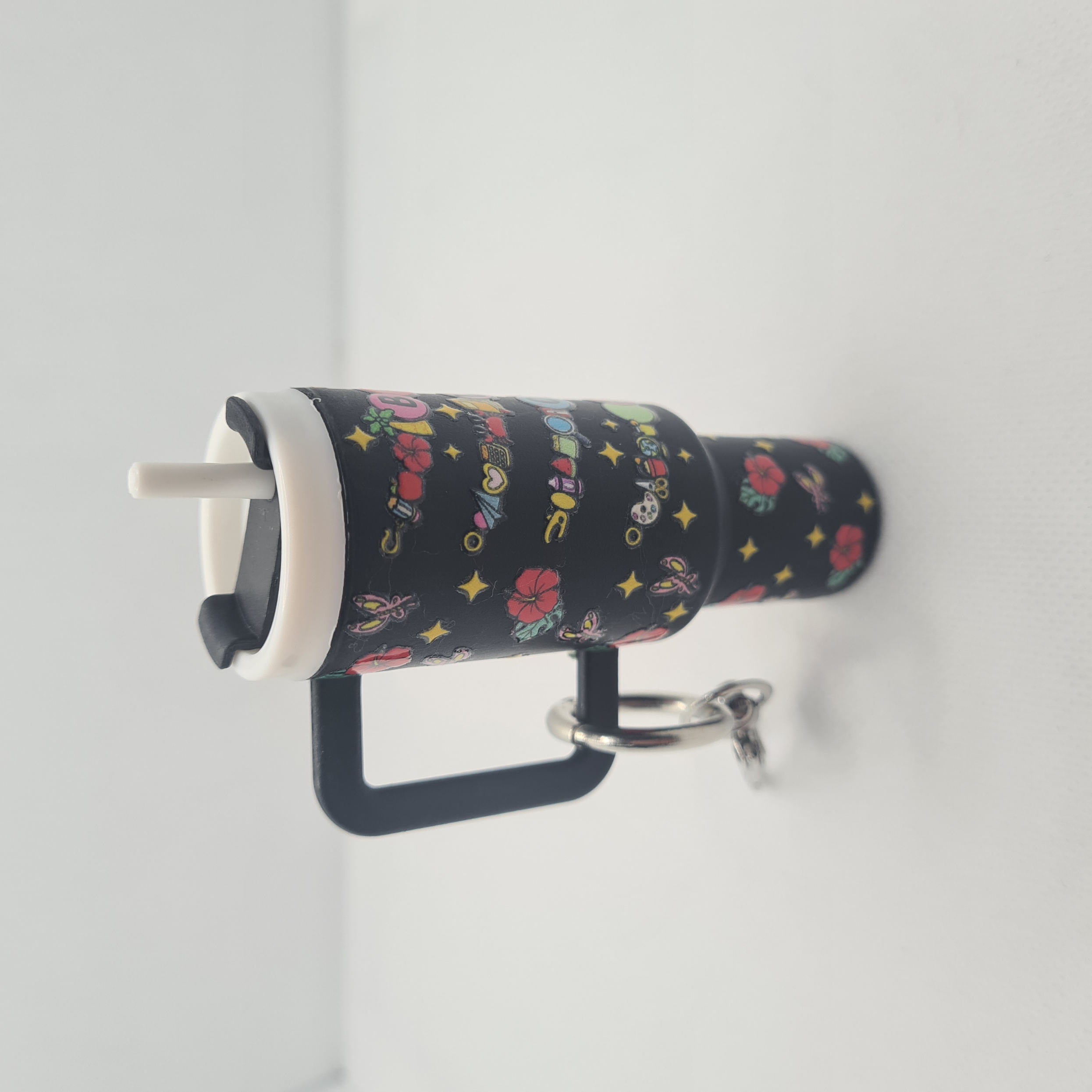 Carry your essentials in style while showing off a little attitude with this playful mini tumbler keychain.