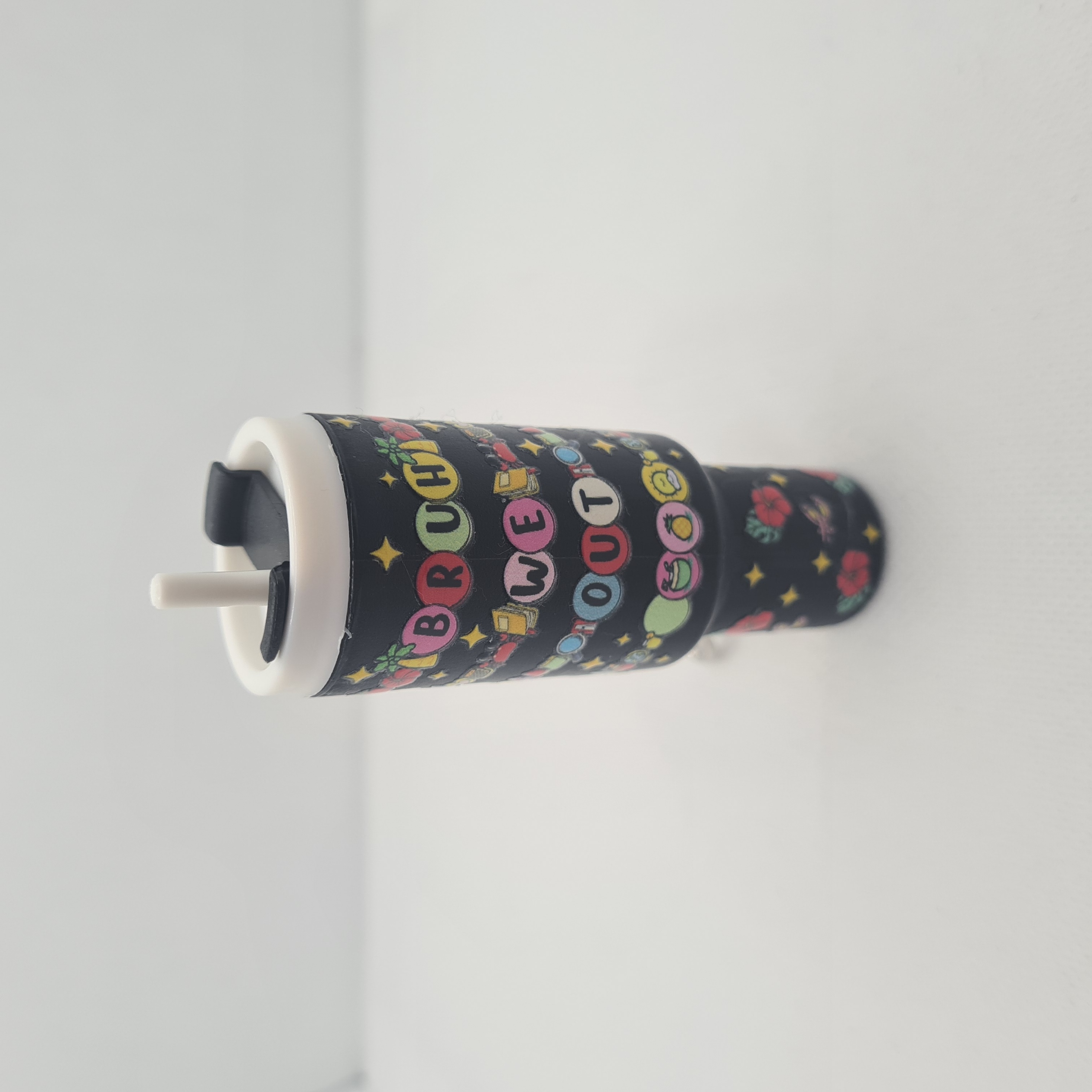 Make a statement with the Bruh We Out Mini Tumbler Keychain. This black tumbler-shaped keychain features the bold phrase “Bruh We Out,” perfect for showing off your personality with a touch of humour.