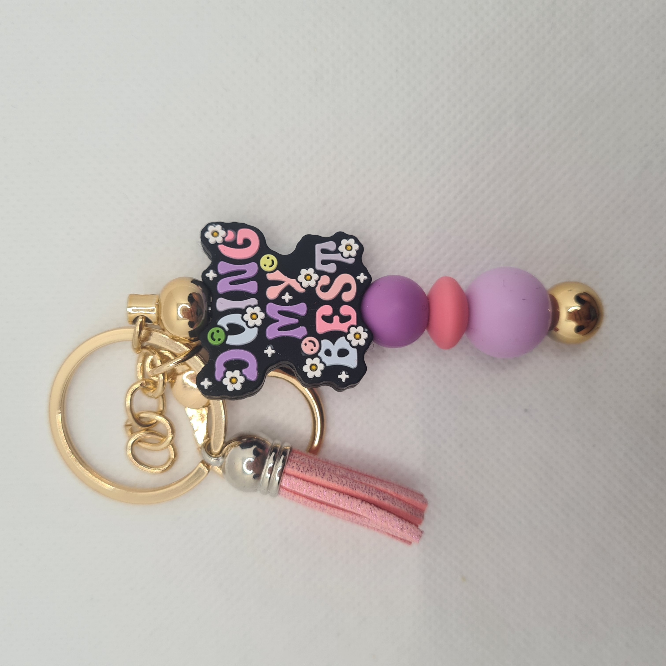 Celebrate self-care and positivity with our Doing My Best Silicone Bead Keychain. The focal bead proudly displays the phrase “Doing My Best,” paired with vibrant purple silicone beads and a playful pink tassel for a cheerful, uplifting look.