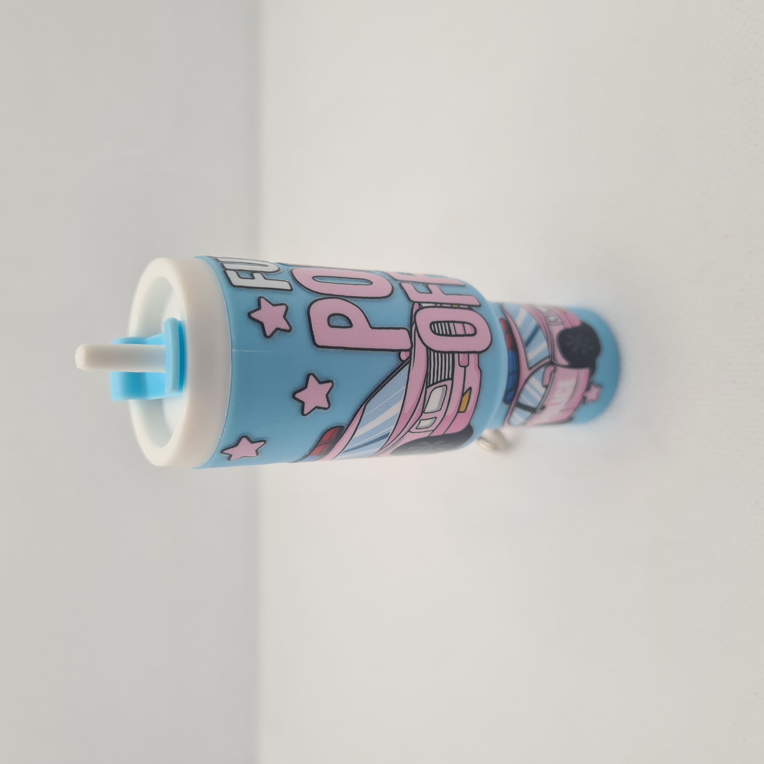 Celebrate your little law enforcement fan with the Future Police Officer Mini Tumbler Keychain. This light blue tumbler-shaped keychain features the phrase “Future Police Officer” in pink, along with a cute pink police car for a fun and playful design.
