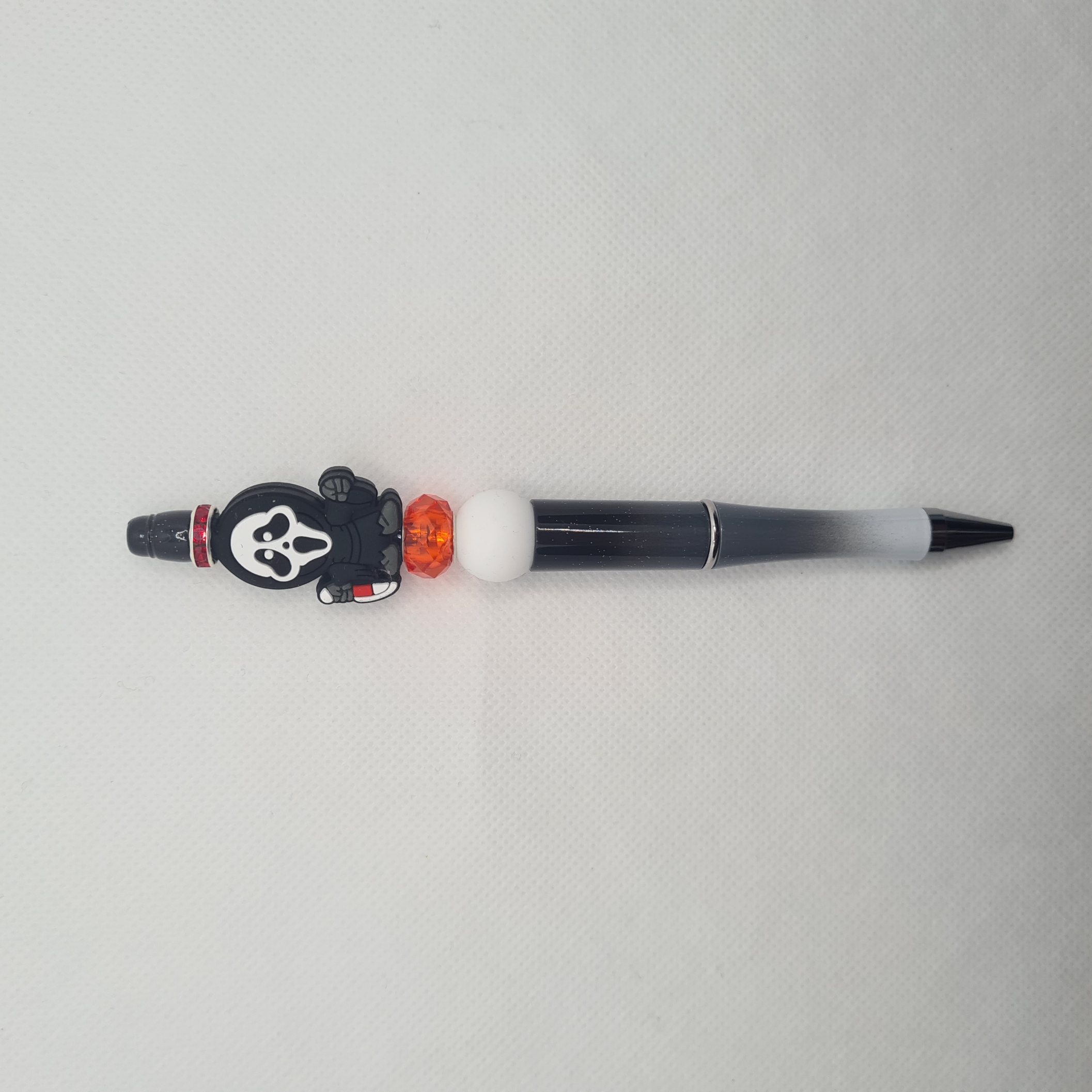 Add a touch of spooky fun to your stationery with the Ghostface Silicone Bead Pen. Featuring a striking black and white ombre pen barrel, this pen showcases a Ghostface focal bead that brings iconic horror-movie style to your writing. Red and white silicone accent beads complete the bold colour palette, while smooth black ink makes it perfect for everyday writing, journaling, or note-taking.
