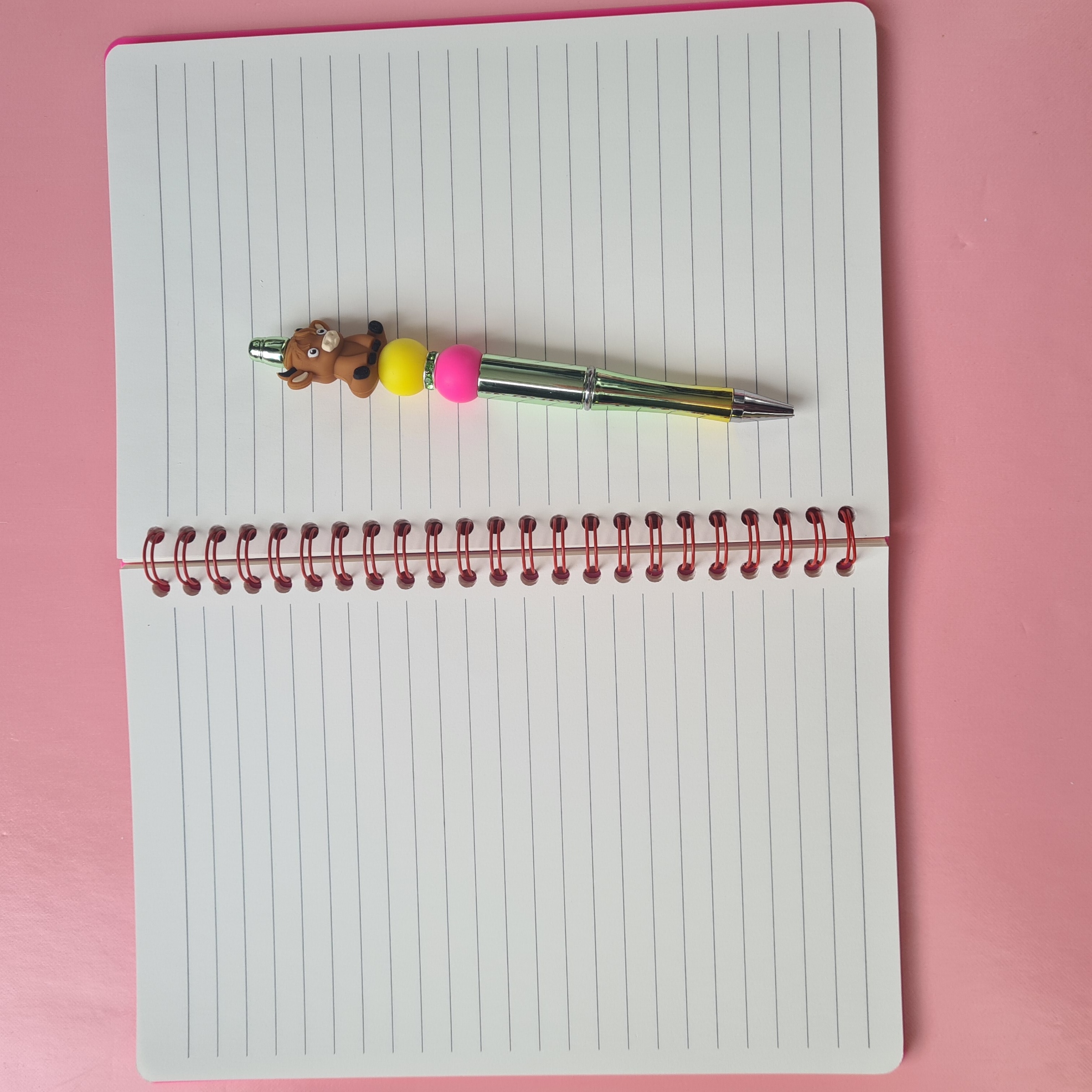 The bundle comes with a coordinating blue and green metallic pen, accented with a highland cow focal bead and pink and yellow beads, perfectly complementing the notebook’s charming design. Ideal for animal lovers, stationery enthusiasts, or anyone who enjoys whimsical and heartwarming designs.