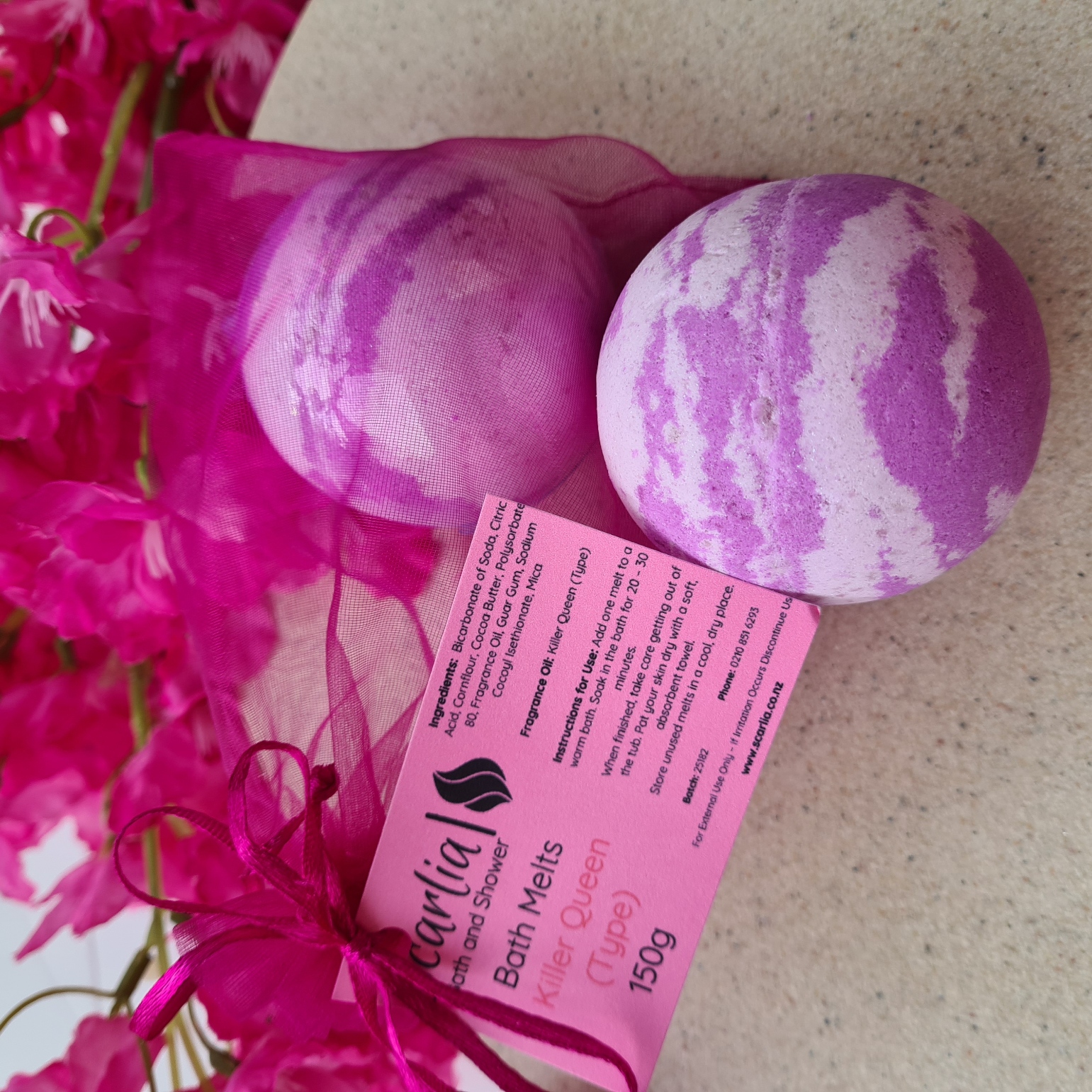 Treat yourself to a royal soak with our Killer Queen (Type) Bath Melt. Infused with rich cocoa butter and a luxurious fragrance inspired by the bold, seductive scent of Killer Queen, this melt transforms your bath into a silky, aromatic experience. As it fizzes and melts into the water, nourishing oils wrap your skin in softness while the captivating fragrance lingers long after you step out.