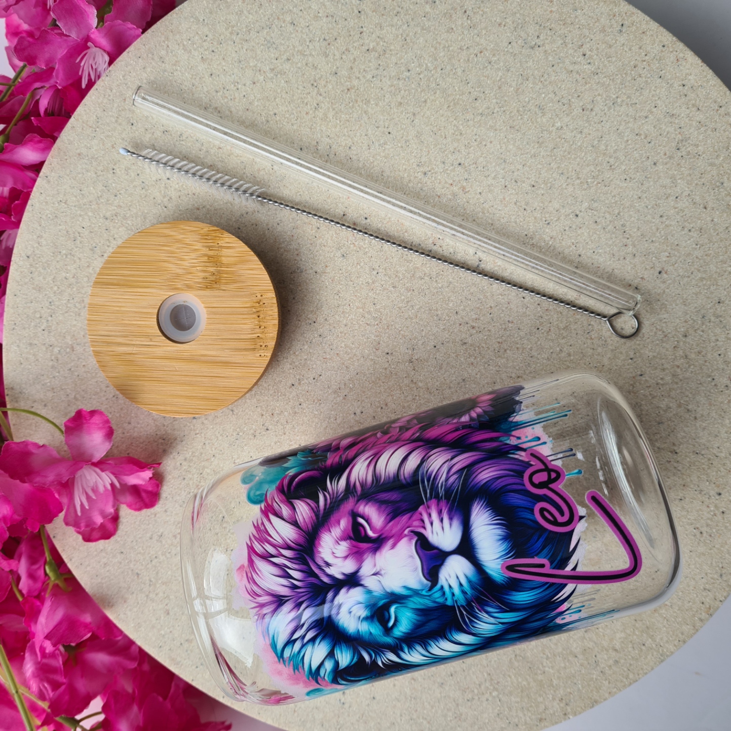 Celebrate your zodiac energy with our Leo Glass Cup. Holding 460ml and measuring 13.5cm tall by 7cm wide, this cup blends elegance with a pink and purple celestial theme, perfect for sipping in style.