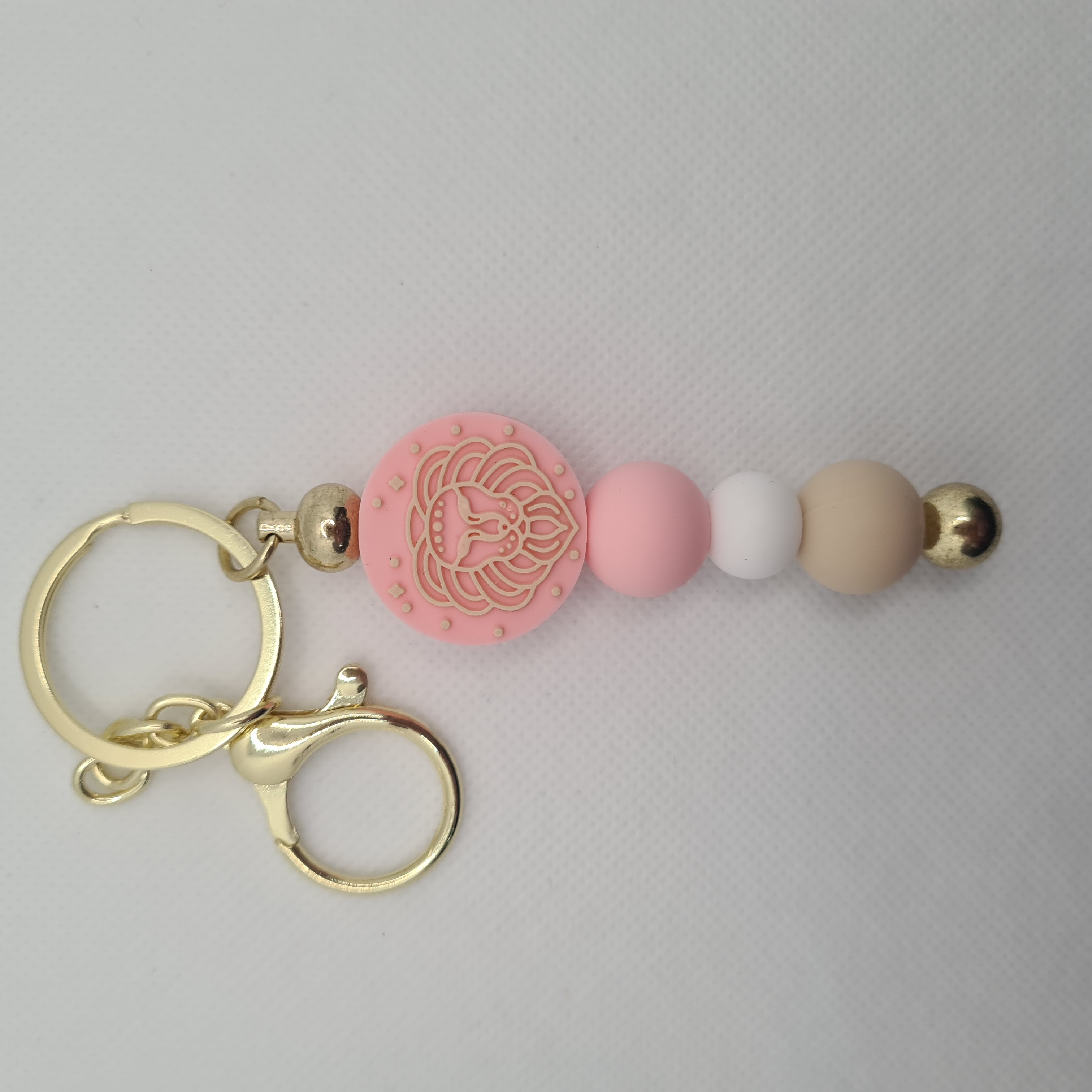 Show off your star power with our Leo Star Sign Silicone Bead Keychain. Designed with Leos in mind, this accessory features a pink focal bead with a detailed lion design — the proud symbol of the Leo zodiac sign. Complemented by a mix of pink, tan, and white silicone beads, the colours create a warm, bold look that reflects Leo’s fiery confidence and charm.