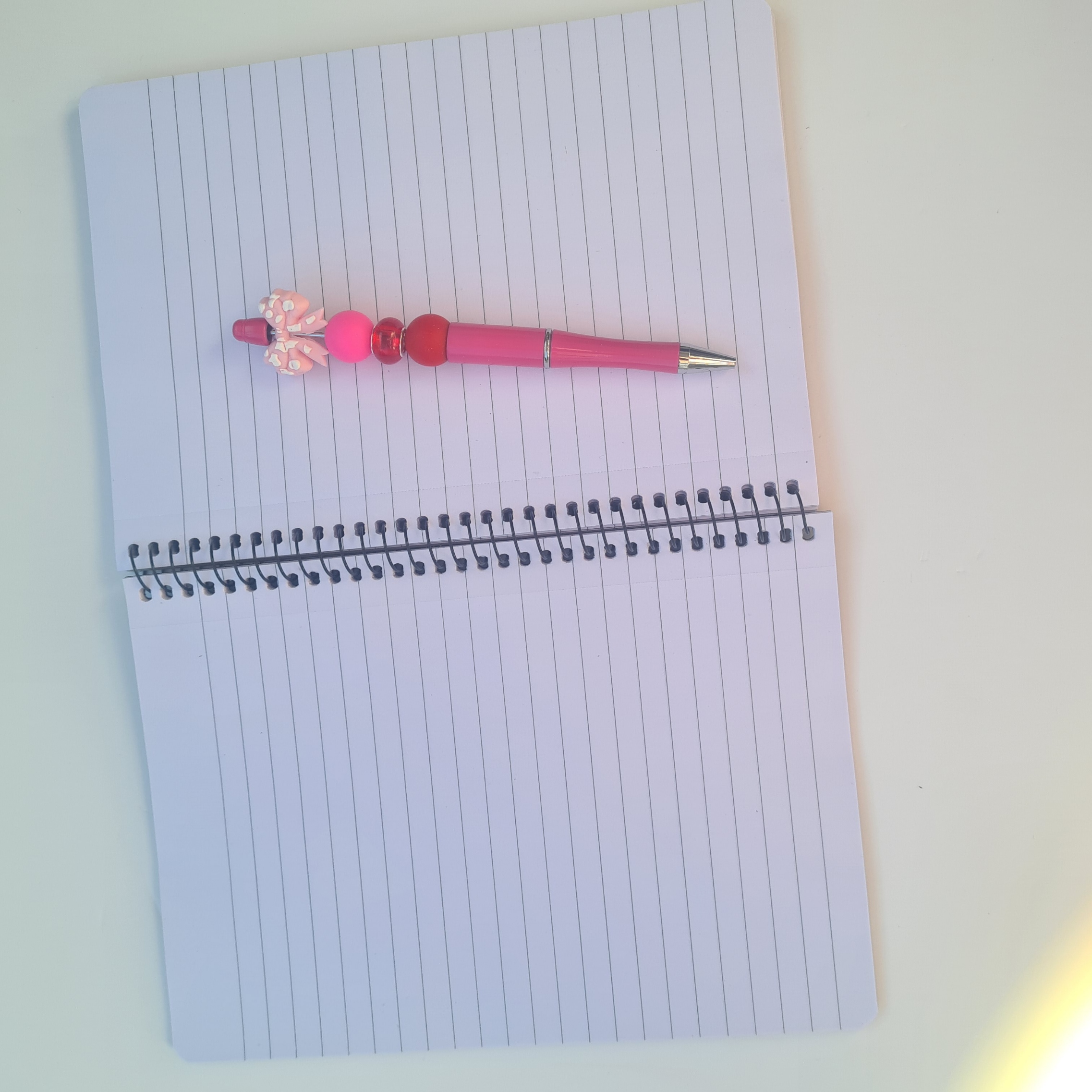 The bundle comes with a coordinating pink pen, adorned with a cute pink bow bead with white spots, along with pink and red accent beads to tie the whole look together. Stylish and fun, it’s the perfect partner for your notebook, making every word you write just a little sweeter.