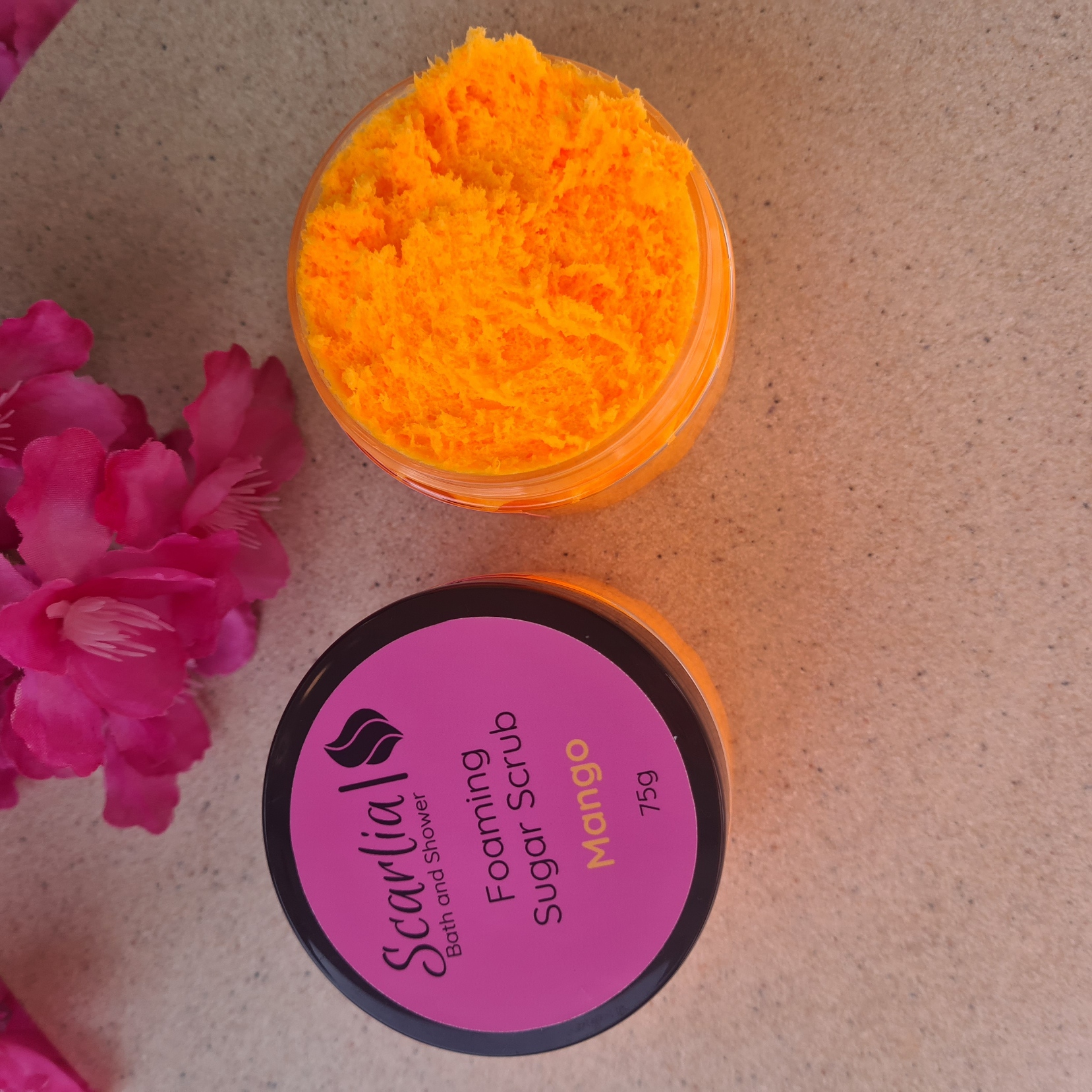 Bring a burst of tropical sunshine to your skincare routine with our Mango Foaming Sugar Scrub. This luxurious 2-in-1 formula gently exfoliates with fine cane sugar while transforming into a creamy, bubbly lather that leaves your skin soft, smooth, and refreshed. Enriched with Shea Butter and Vitamin E, it nourishes while it polishes, keeping your skin hydrated and glowing.