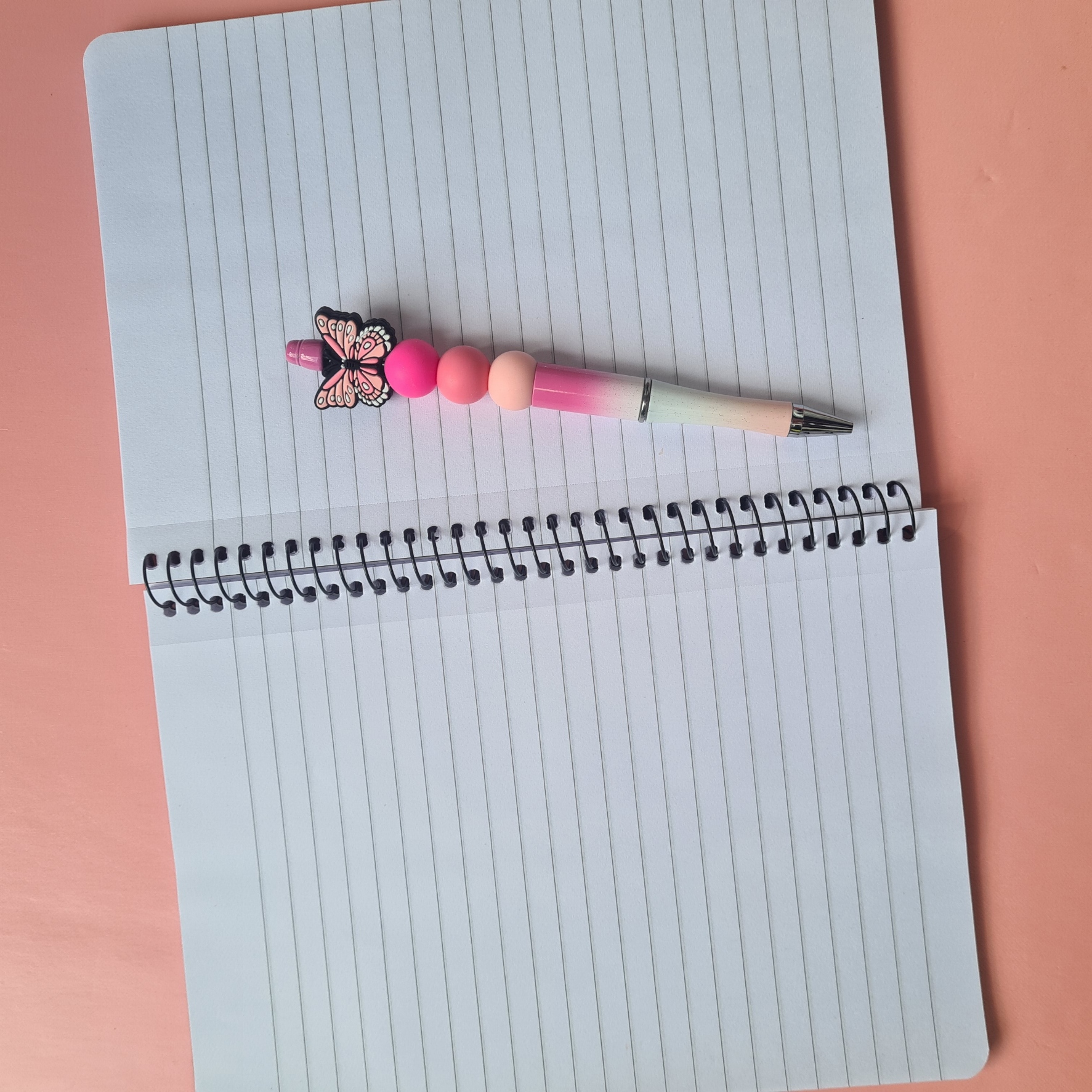 The bundle includes a pink and white ombre pen, finished with a pink butterfly bead and coordinating pink accent beads, making every writing moment feel special.