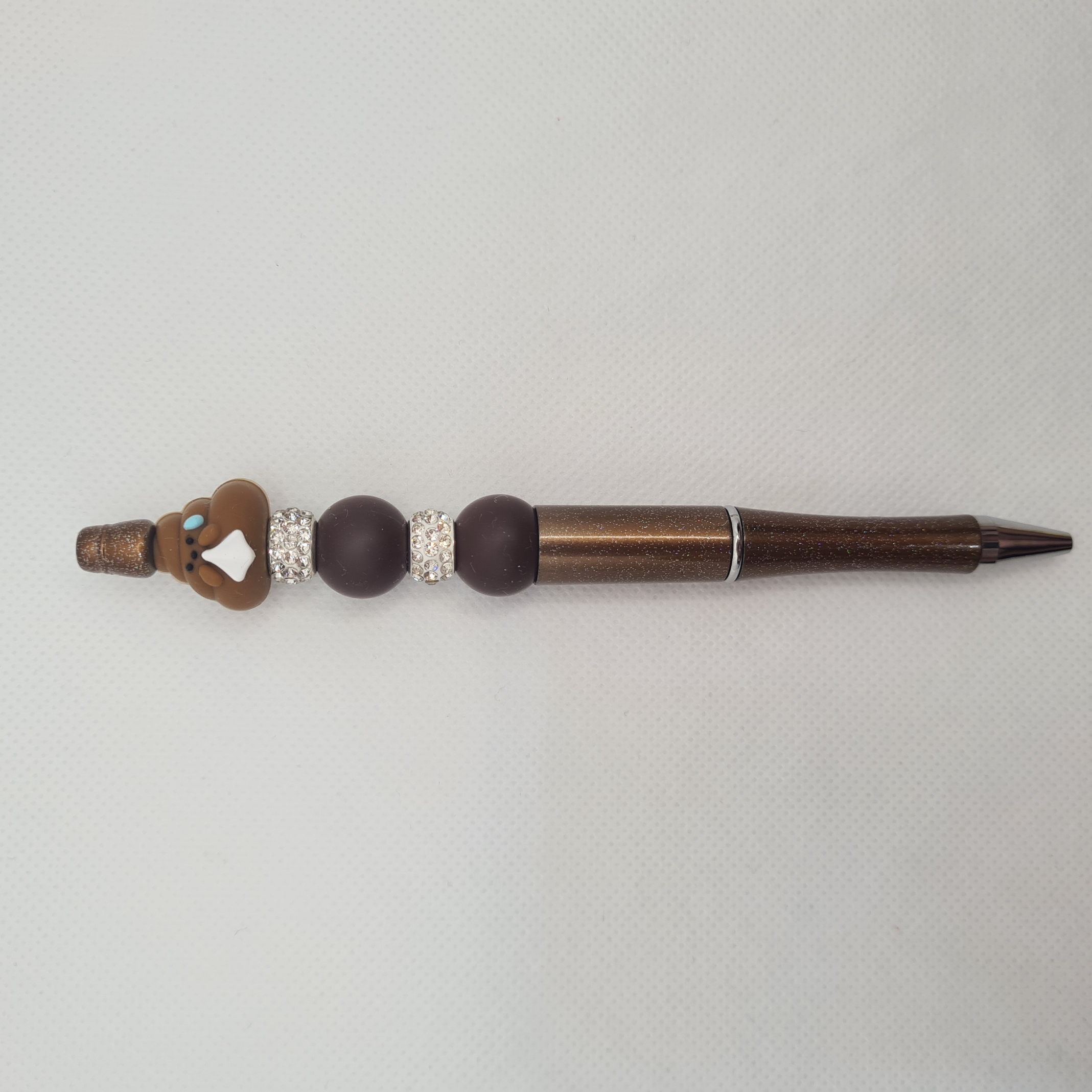 Add a cheeky twist to your writing with the Poop Silicone Bead Pen. Featuring a brown pen barrel, this pen showcases a playful poop emoji-shaped focal bead holding a tiny tissue with a little tear. Complemented by brown silicone accent beads, it writes smoothly in black ink while adding a humorous and whimsical touch to your stationery collection.