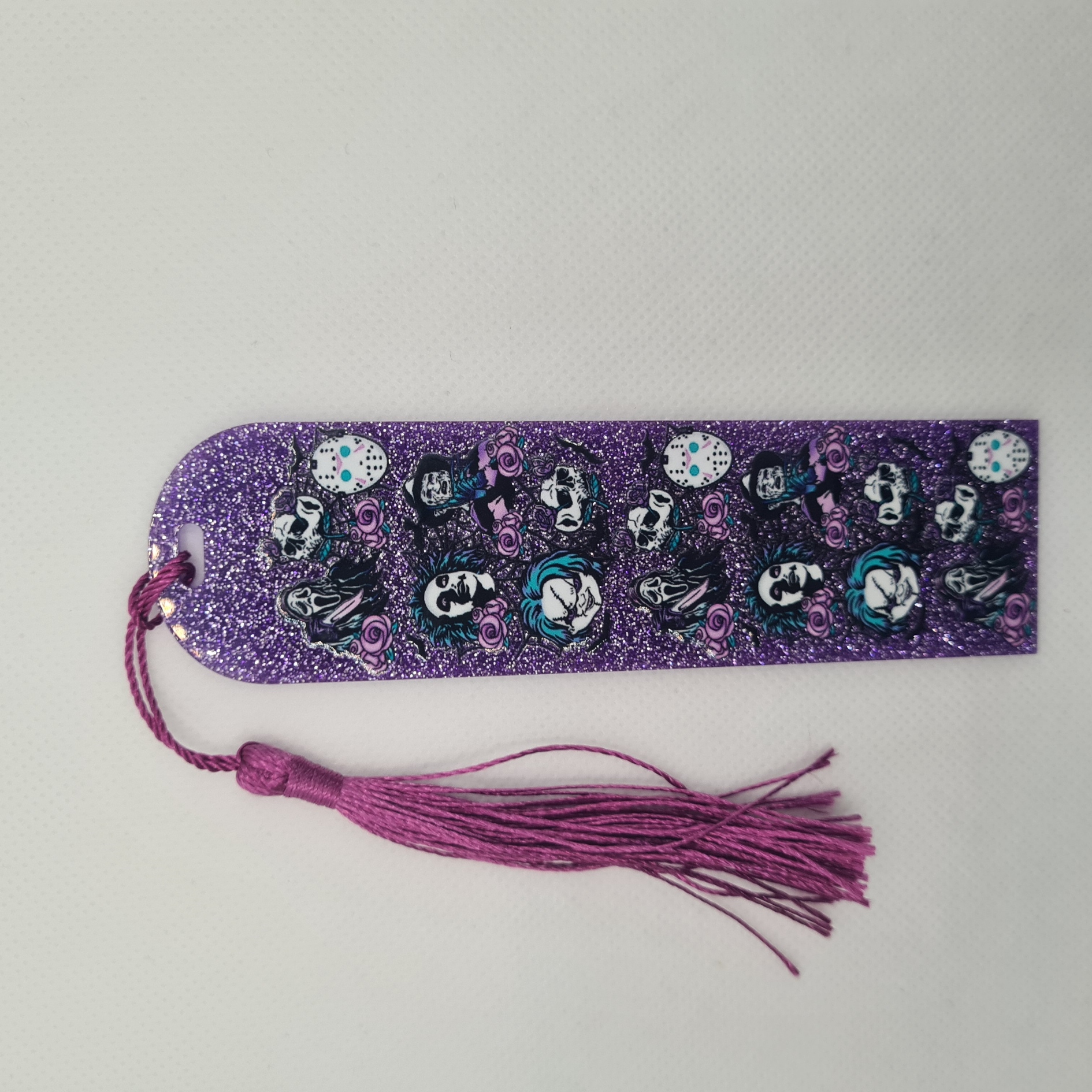 Step into the world of horror classics with our Purple Horror Mix Bookmark. Set against a dazzling purple glittery background, this bookmark features an unforgettable line-up of iconic horror characters – Ghostface, Freddy Krueger, Beetlejuice, Chucky, and Jason. Finished with a matching purple tassel, it’s the perfect page saver for fans of the creepy and macabre.