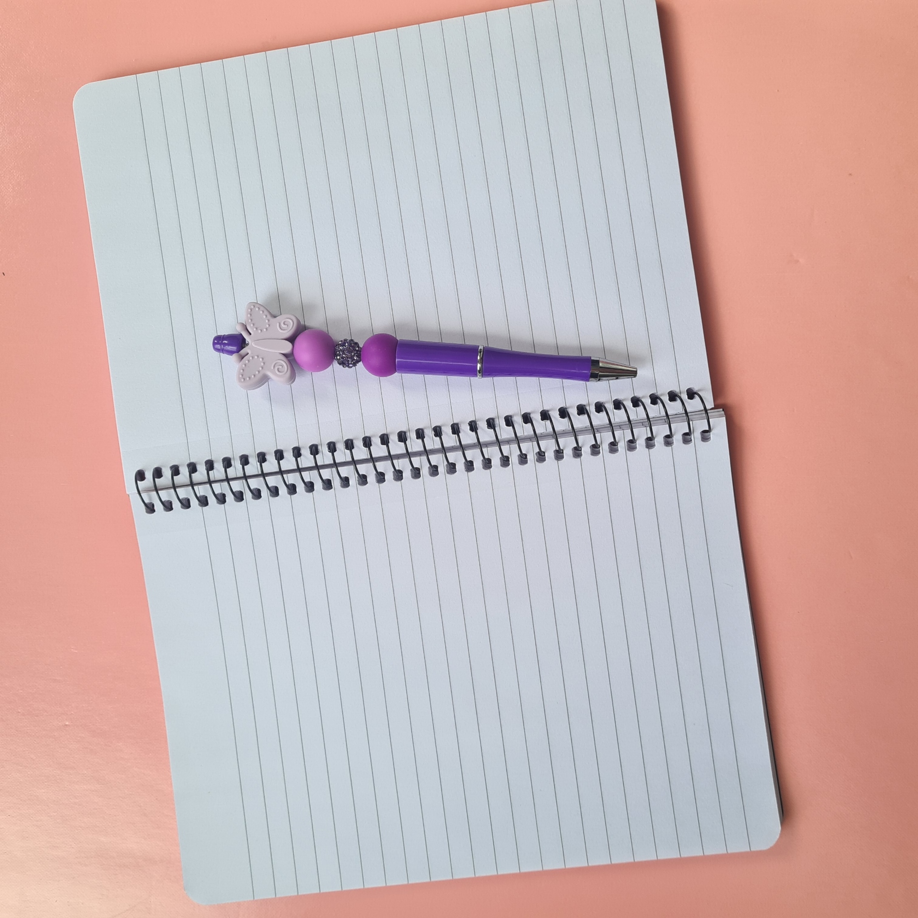 The set comes with a coordinating purple pen, adorned with a purple butterfly bead and matching purple accent beads, completing the bundle with a cohesive and enchanting design. Perfect for animal lovers, dreamers, or anyone who enjoys unique and whimsical stationery.