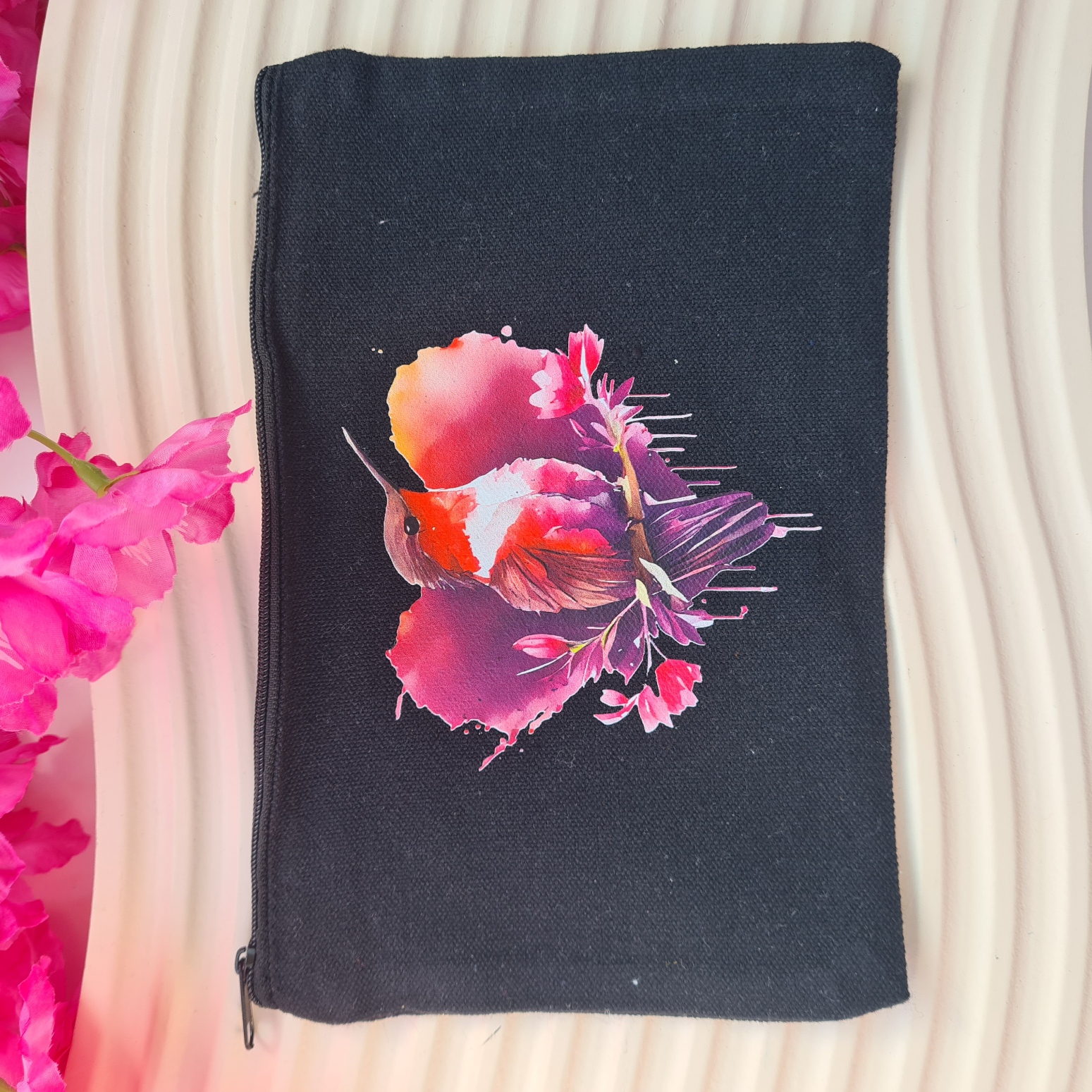 Add a touch of charm to your stationery collection with the Red Bird Pencil Case. Made from durable black canvas, this stylish case features a beautiful design of a vibrant red bird perched on a branch with delicate flowers. Its compact yet roomy size makes it perfect for carrying pens, pencils, and other small essentials, whether for school, work, or home use.