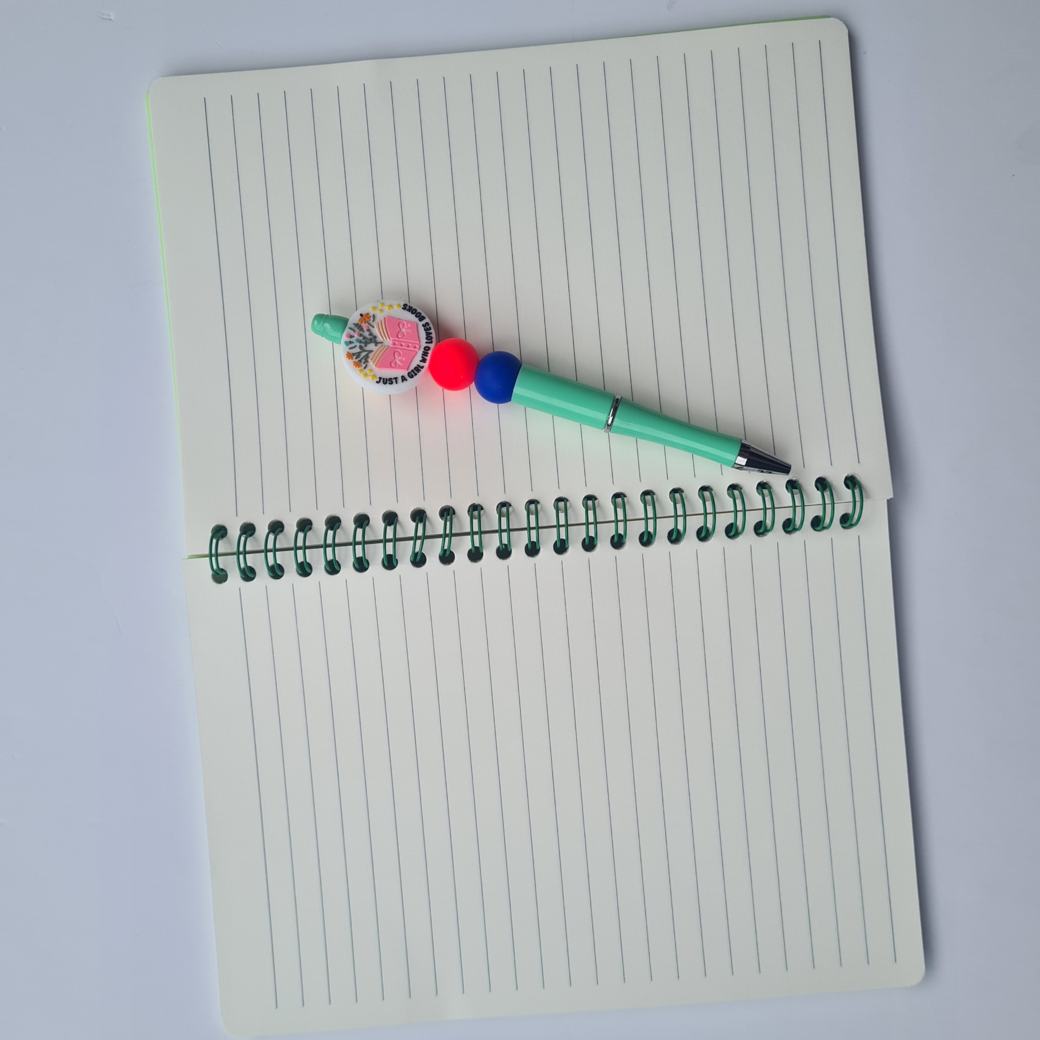 The matching green pen makes this bundle extra special. It’s decorated with a focal bead showing a book with flowers sprouting from it and the words “just a girl who loves books,” paired with coordinating beads for a thoughtful finish.