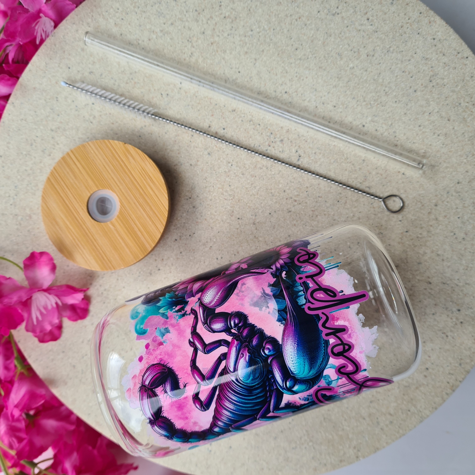 Celebrate your zodiac energy with our Scorpio Glass Cup. Holding 460ml and measuring 13.5cm tall by 7cm wide, this cup blends elegance with a pink and purple celestial theme, perfect for sipping in style.