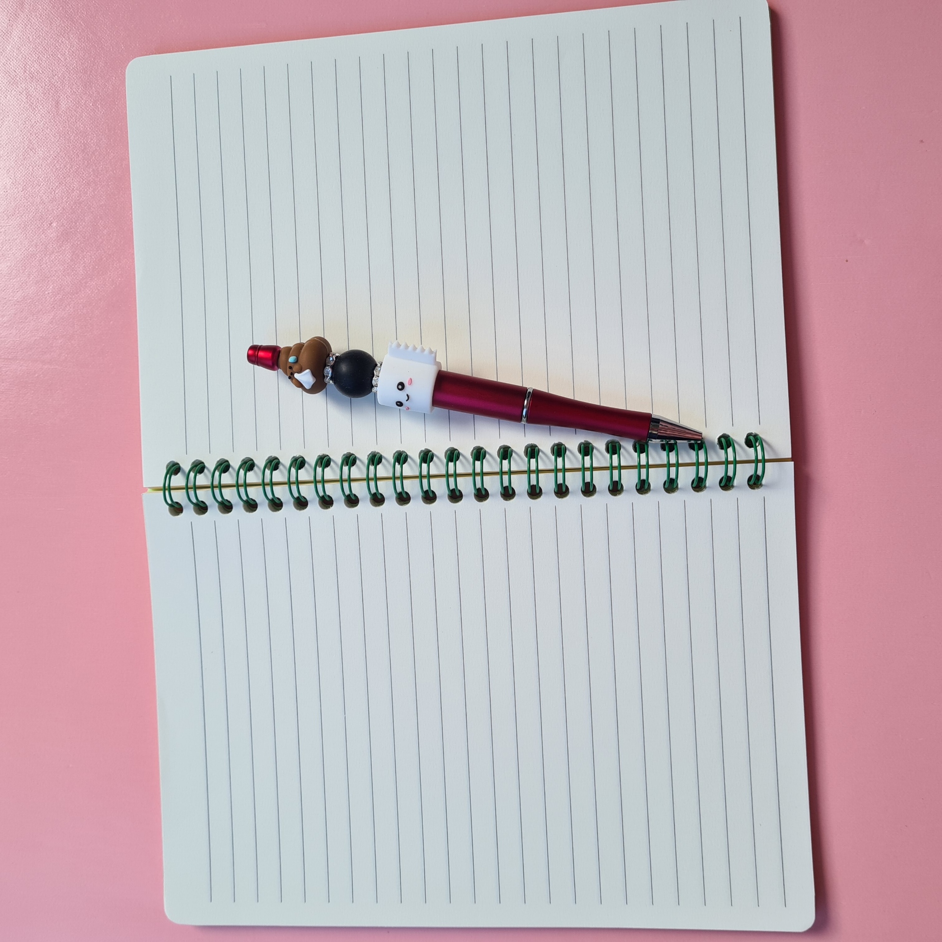 The bundle comes with a bold red pen that includes a hilarious poop bead and a toilet paper bead — the perfect quirky match to your notebook.