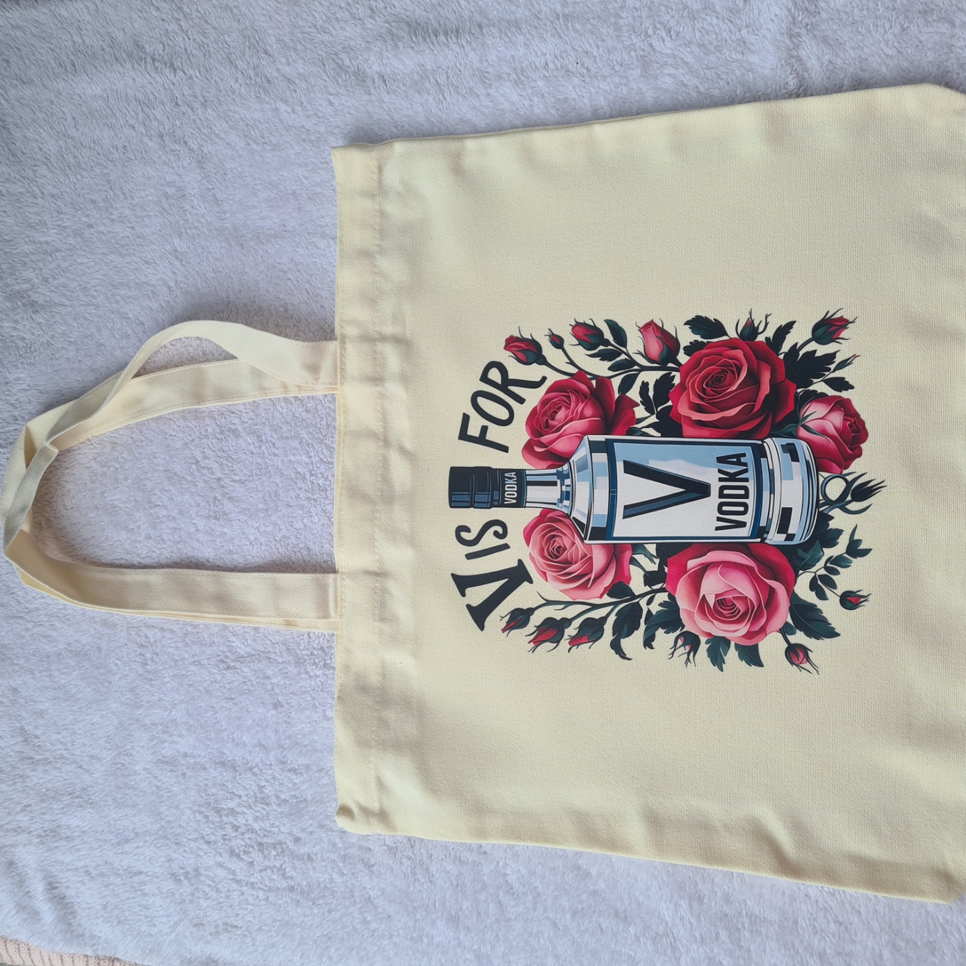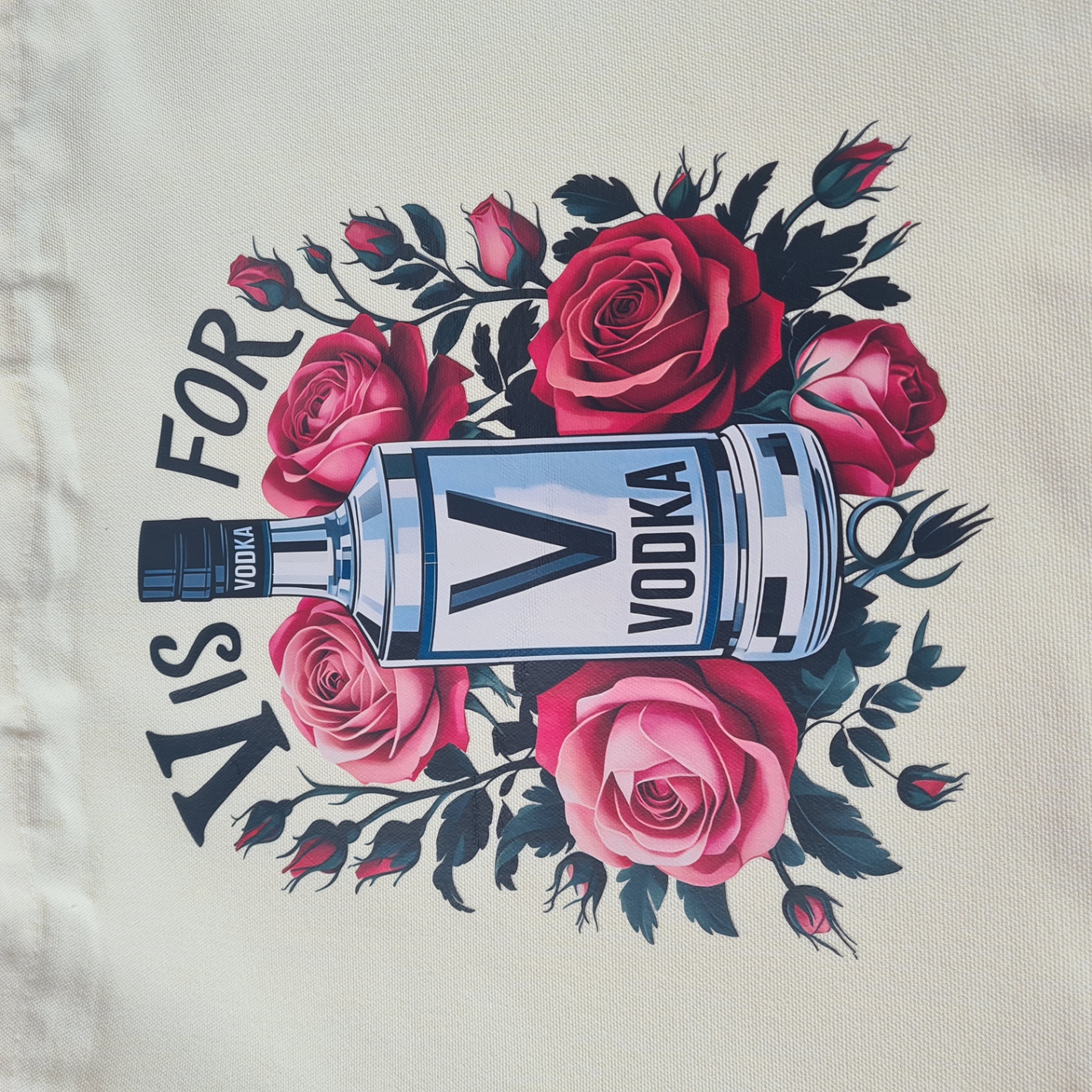Show off your cheeky side with the V Is For Vodka Tote Bag! Featuring the playful phrase alongside a bottle of vodka surrounded by vibrant red roses, this tote is perfect for those who enjoy a little humour with their style.